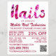 Moderno Técnico De Uñas Rosa, Volantes De Publicidad En Salones Nales En La Tienda De Tarjetas De Negocios.