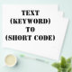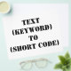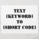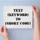 "TEXT (KEYWORD) TO (SHORT CODE)" Cambia KEYWORD y SHORT CODE a tu propia palabra clave de mensajería de texto y código corto. Añade cualquier otro lema o texto.