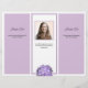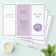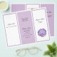 Plantilla de folleto tríptico en lavanda y blanco con flores de hortensias moradas. Dobla en tercios y agrega una foto tuya en la sección central interior. Paneles alternos blancos y lavanda en ambos lados de papel de folleto asequible te permiten personalizar cada área con información sobre tu negocio.