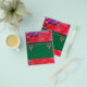 El diseño parece ser una obra de arte digital o estilizada dividida en dos paneles por una línea verde vertical. Aquí hay una descripción detallada: ・ Panel izquierdo: o Cuenta con un collar ornamentado colgando en el aire sobre una roca morada. o La roca está rodeada de follaje verde y rojo. ・ Panel derecho: o Este lado es una versión reflejada y ligeramente alterada de la izquierda. o El collar está ausente. o Hay algunas variaciones en la ubicación del follaje. La composición simétrica y los colores vibrantes contrastantes crean un efecto visualmente llamativo.