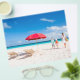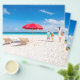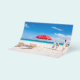 Dos sillas bajo la sombrilla de una hermosa playa tropical con una familia caminando cerca