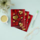 Composición vertical de rojo y oro, con texturas de valentinas hechas de Relieve metalizado y brocado sobre fondo rojo. Decoración día de San Valentín.