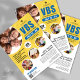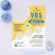 Flyer VBS amarillo azul Vacaciones Escuela de Biblia Igl