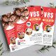 Flyer VBS rojo y blanco Vacaciones Escuela de Biblia Igl