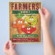 ¿A quién no le gusta su mercado de agricultores local? ¡Promocione su mercado de agricultores local con el increíble folleto de Verduras locales frescas del mercado de agricultores! Edite el texto y agregue la información de su mercado de agricultores. El folleto del mercado de agricultores tiene una zanahoria de dibujos animados flexionada, un tomate y una manzana. ¡Visite y disfrute de su mercado de agricultores local, coma local y coma fresco! ¡Gracias por comprar local!