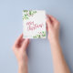 Tarjeta de Navidad moderna y elegante con texto manuscrito rojo magenta en estilo caligráfico (con 3 fotos familiares en el reverso) en papel simple blanco con tu texto personalizado en ambos lados con vegetación botánica en acuarela y bayas sagradas. +++++++++ POR FAVOR TEN EN CUENTA que los colores del fondo y la letra son editables. Puedes cambiar cualquiera de ellos después de seleccionar la opción PERSONALIZAR en el menú PERSONALIZARLO. Si no te sientes cómodo haciéndolo, por favor solicita el Servicio de Diseño en Vivo de Zazzle o pide ayuda al diseñador. +++++++++++++++++++++++++++ POR FAVOR LEA ESTO ANTES DE COMPRAR. Esta es una tarjeta asequible impresa en un FOLLETO. ++++ Ten en cuenta que EL PAPEL ECONÓMICO ES DELGADO - Puedes actualizar para que esta tarjeta se imprima en cartulina ++++ NO SE INCLUYEN SOBRES. +++ Verifica toda la información y la ortografía de tu texto porque recibirás exactamente lo que ves - nadie más verificará nada antes de imprimir. ++++ Esta tarjeta está diseñada para un tamaño de 4,5" x 5,6". En caso de que elijas otro tamaño de tarjeta y el texto se salga de la página, todo deberá ser corregido antes de agregar