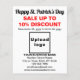 Folleto blanco para el Día de San Patricio que puedes personalizar especificando el porcentaje de descuento, las fechas de venta, cargando el logotipo de tu negocio, escribiendo tu nombre de negocio, dirección, número de teléfono, correo electrónico y sitio web. Personalizar y repártelo para atraer a más clientes a que compren sus productos o clientes para que les gusten sus servicios. Por favor, compruebe la apariencia de los lados delantero y trasero después de cargar el logotipo y escribir textos. Si la apariencia le resulta agradable, puede realizar su pedido ahora. Si necesita cambiar el tamaño y la posición del logotipo y los textos para que encajen en este volante o en el tamaño que ha elegido, ajuste la herramienta de diseño. También puede cambiar el color de fondo, el color de fuente y el estilo de fuente en la herramienta de diseño. ¡Feliz Día de San Patricio! Le deseamos la mejor de las suertes, alegría y más ventas de esta fiesta.