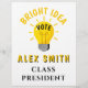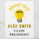 The Arty Apples presenta un audaz y motivador poster de votación diseñado para las elecciones de presidente de clase y consejo estudiantil. Este llamativo poster anima a los estudiantes a participar en el proceso electoral y a emitir su voto por el líder elegido, fomentando un sentido de responsabilidad cívica.