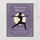 A modern yoga instructor flyer design featuring a silhouette of a serene woman in a graceful warrior pose (Virabhadrasana Two) against a pale yellow sun, all on a soft lavender background. Delicate lotus flower illustrations frame the edges.