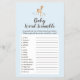 Este ciervo acuarela con hongos es perfecto para una simple ducha o rociada rústica. El diseño de los animales de bosque incluye un ciervo de color agua con champiñones azules y caligrafía oscura clásica sobre un fondo azul pálido. LLAVE DE RESPUESTA: 1. téter, 2. bassinet, 3. fórmula, 4. manta, 5. cuna, 6. pañal, 7. móvil, 8. botella, 9. pacificador, 10. pato de goma, 11. animal relleno 12. termómetro, 13. trona alta, 14. tabla cambiante, 15.