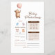 Celebrate your upcoming arrival with this adorable watercolor bear baby predictions flyer. This charming design features a sweet watercolor bear holding a pink balloon, perfect for a whimsical baby shower. Guests can fill out their predictions for the baby's gender, birth date, birth month, birth time, birth weight, hair color, and eye color, adding an interactive and fun element to your celebration. The soft, neutral color palette makes it a versatile choice for any baby shower theme. This flyer is a delightful keepsake for parents-to-be to cherish.