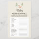 CLAVE DE RESPUESTA:1. 2. canasta de musgos, 3. fórmula, 4. manta, 5. cuna, 6. nappy, 7. móvil, 8. botella, 9. tonto, 10. pato de goma, 11. animal relleno 12. termómetro, 13. silla alta, 14. cambio de cuadro, 15. pergamino