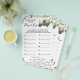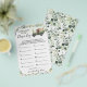 Animales Woodland Lo que está en la tarjeta de Baby Shower Diaper Bag. Cambiar la redacción al diseño. Para una personalización adicional (cambiar el número de elementos y cualquier otro texto, color de fuente, estilo de fuente ), haga clic en personalizar, desplácese hacia abajo y haga clic en el vínculo "hacer clic en el personalizar más adelante". CÓMO JUGAR: Llenar una bolsa de pañales con 12 artículos esenciales para bebés, los huéspedes escribirán los artículos para bebés que creen que están en la bolsa de pañales. La persona con las suposiciones más correctas gana.