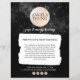 Una ilustración en acuarela de una luna dorada ámbar está rodeada por un cielo de estrellas en este diseño de folleto en blanco y negro de 1201AM. Su nombre o el nombre de su negocio está centrado en la luna para un logotipo único. El folleto de doble cara proporciona mucho espacio en la parte posterior para promocionar sus clases, servicios o para otros usos. Este diseño etéreo fue creado para instructores de yoga, coaches de vida, astrólogos, sanadores, acupunturistas, trabajadores de reiki y energía, o cualquier profesión que busque un diseño creativo para su negocio. Ideal para usar en listas de precios, menús de servicios, casas abiertas, eventos especiales y más. Arte y diseño original © Estudio de Diseño 1201AM | www.1201am.com