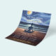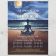 Yoga Fitness Studio / Instructor de Meditación / Entrenador personal / Entrenador de vida / Healer / Reiki Master / Massage Therapy Open House Flyer Template - Mujer tranquila meditando silueta de noche bajo el cielo de la luna de la fantasía en la playa del Océano tranquilo.