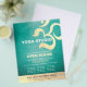 Yoga Studio Meditation Instructor / Life Coach / Healer / Reiki Master Open House Flyer Template - Modern Faux Relieve metalizado dorado Om Symbol sobre el fondo azul verde del color turquesa Verde azulado turquesa de fondo.