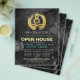 Elegante Árbol de acuarela YOGA Curso de Meditación Estudio Planta de Volante de Casa Abierta - Elegante caligrafía de Relieve metalizado dorado Faux Yoga Meditación Postura sobre Pincel de color de agua negro gris Pinto Strokes Fondo.