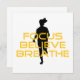 Una corredera de silueta con un texto de estilo moderno amarillo que dice Focus Believe Breathe sobre deportes y equipo atlético que incluye bolsas, camisetas, camisetas, camisetas sin mangas, tazas, tarjetas, pegatinas, y más, genial para cualquiera que sea corredor de distancia, corre maratones, sólo le encanta correr en general. Un gran diseño motivacional y inspirador.