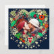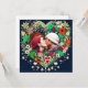 flores de color rojo bonito, azul oscuro y beige llamativo arte folclórico estilo corazón floral. Agregue una imagen de usted y su compañero en el área de personalización. Dulce regalo romántico para Navidades, El día de San Valentín o un aniversario.