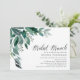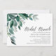 La invitación al brunch de la ducha de moda nupcial incluye hojas y follaje de eucalipto verde exuberante, ilustrados en acuarela. Personalice los detalles de su brunch nupcial alineados a la derecha. Las tarjetas cambian a verde forestal sólido.
