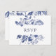 Esta bonita y elegante tarjeta de boda botánico presenta hojas de tinta azul en un fondo blanco y es el lugar ideal para elegir los entrantes.