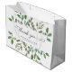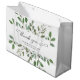 Estos modernos bolsos botánicos de tiendas boutique presentan un marco de abundantes hojas de color verde acuático y unas cuantas bayas diminutas sobre un fondo blanco limpio. Las palabras "gracias" aparecen en una caligrafía elegante y rápida, y hay espacio para añadir el nombre de tu empresa o pequeña empresa y la información de contacto. ¡Esta es una bolsa que sus clientes y clientes querrán llevar mucho tiempo después de que haya hecho el viaje de compras!
