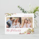 Envía deseos de Navidad a tu familia y amigos con esta tarjeta festiva de vacaciones. Este sencillo diseño de tarjeta de Navidad tiene un collage de tres imágenes en la parte delantera, acompañado de un elegante diseño de ramas festivas de acuarela, y un patrón a rayas de acuarela en la parte trasera. El estilo moderno y minimalista hará que tus fotos familiares realmente brillen.