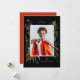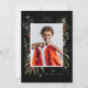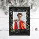 Ilustración original de bayas de Navidad y trozos de nieve sobre negro con foto de retrato. Personalice la parte trasera como desee.