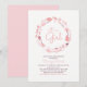 Esta linda invitación de baby shower con diseño de follaje presenta un gráfico de corona moderno con hojas, flores y pájaros en tonos de rosa. Más artículos coincidentes disponibles en mi tienda BaraBomDesign.