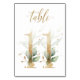 Tarjeta de número de mesa hermosa con un motivo botánico - una ilustración de acuarela de hojas verdes y doradas. Mesa 11. Por favor, revise todos los números disponibles