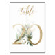 Follaje verde y dorado, Mesa 20, Número de mesa