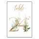 Tarjeta de número de mesa hermosa con un motivo botánico - una ilustración de acuarela de hojas verdes y doradas. Mesa 24. Por favor, revise todos los números disponibles