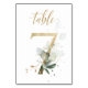 Tarjeta de número de mesa hermosa con un motivo botánico - una ilustración de acuarela de hojas verdes y doradas. Mesa 7. Por favor, revise todos los números disponibles