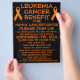 Este hermoso folleto de beneficio para el cáncer de leucemia es perfecto para publicitar un beneficio y subasta contra el cáncer una vez que lo personalices con todos los detalles de tu beneficio en las casillas proporcionadas. Consulta nuestra tienda para obtener carteles de beneficio para el cáncer de leucemia coordinados y otros tipos específicos de folletos de beneficio para el cáncer.