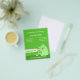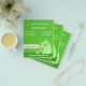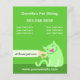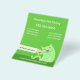 Folleto lindo para cuidadores de mascotas. Mano acariciando gato. Fondo verde con texto blanco.