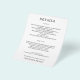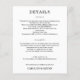 Pequeño papel de valor asequible de 80 lb de peso, estos volantes de detalle de 4,5" x 5,6" incluyen su información en letras de moda en cualquier fondo de color. La forma perfecta de incluir información adicional sobre bodas para sus huéspedes. El servicio de diseño en vivo puede ayudarle con su diseño, tamaño o ajuste el color si es necesario.