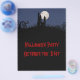 folleto de Halloween con una casa espeluznante en una colina