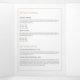 Un falso motivo de anillo de oro se combina con tu nombre o nombre de negocio para una estética elegante en este hermoso folleto triple. Un tratamiento de diseño creativo para cosmetólogos, salones de belleza, salones de uñas, maquilladores, peluqueros, productos de cuidado de la piel y más. Actualice el texto del personalizable para que se ajuste a su marca, y personalice los detalles de todo el folleto para su propio uso. Estos folletos 5x7 son perfectos para mostrar sus listas de precios y su menú de servicios, o para describir su línea de productos. Añadir cualquier foto adicional para una personalización aún mayor. Una gran pieza de marketing para repartir a los clientes potenciales para que introduzcan rápidamente su negocio. Póngase en contacto con el diseñador para obtener ayuda sobre la composición tipográfica o las variaciones de diseño. Arte y diseño © 1201AM Design Studio | www.1201am.com