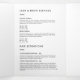 Una estética moderna y mínima en esta moda y un folleto profesional de tres pliegues le permite a su nombre o nombre de negocio destacar junto con una simple foto para contar su historia. La foto recortada y desconectada da un toque editorial a la disposición. Reemplace la foto de stock con su propia imagen para una mayor personalización. Actualice el texto del personalizable para que se ajuste a su marca, y personalice los detalles de todo el folleto para su propio uso. Estos folletos 5x7 son el tamaño perfecto para mostrar las listas de precios y el menú de servicios, o para describir la línea de productos. Una gran pieza de marketing para repartir a los clientes potenciales para que introduzcan rápidamente su negocio. Póngase en contacto con el diseñador para obtener ayuda sobre la composición tipográfica o las variaciones de diseño. © 1201AM Design Studio | www.1201am.com