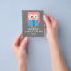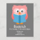 Un colorido y moderno folleto de invitación adecuado para un club de biblioteca que se celebra en una casa o en una librería local. Esta invitación incluye un ilustracion de búho de lectura con libros con texto personalizable y color de fondo. Perfecto para su próxima reunión de club de apuestas.