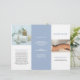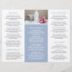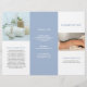 Elegante folleto de tres pliegues con un diseño sencillo y moderno de color azul claro / azul polvoriento / azul celeste en polvo. El interior incluye su lista de precios / menú de servicio. Este diseño es perfecto para un spa de día, pero se puede modificar para cualquier tipo de negocio.