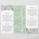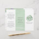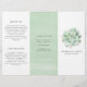 Folleto botánico tríplio con una gran coloración de agua verde azulada pastel suculenta junto con el nombre de su empresa en la parte delantera. Los paneles intermedios tienen un lavado de color verde acuático. En la parte superior izquierda del panel interior y en la parte inferior derecha del panel interior hay un borde compuesto por suculentos verdes y morados. Estos folletos son perfectos para un salón de belleza, maquillador, especialista en cuidado de la piel, peluquero y más.