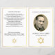 Adecuado para una ceremonia judía de duelo, este programa funerario plegable presenta una Estrella de David dorada para una edificante celebración de la vida Impresa en ambos lados, la parte delantera del folleto muestra una fotografía favorita en el marco ovalado del efecto oro. El interior puede ser editado con el orden de servicio o lo que desee. NOTA: Se imprime el efecto Relieve metalizado de oro FAUX NO metálico.