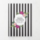 Su nombre o nombre de negocio está elegantemente decorado en una corona circular de flores en un arreglo moderno en este folleto tripliego personalizado. Un tratamiento de diseño creativo para salones de belleza, salones de uñas, maquilladores, peluqueros, planificadores de eventos, productos para el cuidado de la piel y más. Actualice el texto del personalizable para que se ajuste a su marca, y personalice los detalles de todo el folleto para su propio uso. Estos folletos 5x7 son perfectos para mostrar sus listas de precios y su menú de servicios, o para describir su línea de productos. Una gran pieza de marketing para repartir a los clientes potenciales para que introduzcan rápidamente su negocio. Póngase en contacto con el diseñador para obtener ayuda sobre la composición tipográfica o las variaciones de diseño. Arte y diseño © 1201AM Design Studio | www.1201am.com