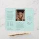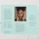 Elegante folleto triplio con un diseño moderno con una flor abstracta sobre un fondo turquesa/acuático. Si lo prefiere, puede reemplazar la imagen abstracta de la flor con su propio logotipo en el formulario de plantilla. La plantilla incluye marcadores para los pliegues y puede eliminarlos en la herramienta de edición de diseño. Este folleto triplio es ideal para un esteticista, peluquero, maquillador, salón de belleza o salón de uñas.