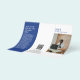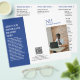 Folleto tríplio moderno (se despliega) con un diseño sencillo y mínimo en azul y blanco con tu monograma en negrita junto con tu nombre de negocio y foto en la parte delantera. El interior tiene tu lista de precios / menú de servicio y el reverso tiene tu información de contacto y código QR opcional. Puede quitar las marcas de tres puntos del código QR en la herramienta de edición de diseño.