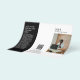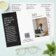 Folleto tríplio moderno (se despliega) con un diseño sencillo y mínimo en blanco y negro con tu monograma en negrita junto con tu nombre de negocio y foto en la parte delantera. El interior tiene tu lista de precios / menú de servicio y el reverso tiene tu información de contacto y código QR opcional. Puede quitar las marcas de tres puntos del código QR en la herramienta de edición de diseño.