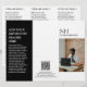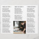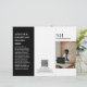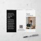Folleto de tres pliegues moderno (se despliega) con un diseño sencillo y mínimo en blanco y negro con tu monograma en negrita junto con tu nombre de negocio y foto en la parte delantera. El interior tiene tu lista de precios / menú de servicio y el reverso tiene tu información de contacto y código QR opcional. Puede quitar las marcas de tres puntos del código QR en la herramienta de edición de diseño.