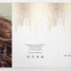 Una serie de puntos falsos de oro en cascada crean un diseño llamativo en este elegante folleto triple. Está situado sobre un fondo blanco para un hermoso motivo tonal. Un tratamiento de diseño creativo para salones de belleza, salones de uñas, maquilladores, peluqueros, planificadores de eventos, productos para el cuidado de la piel y más. Actualice el texto del personalizable para que se ajuste a su marca, y personalice los detalles de todo el folleto para su propio uso. Estos folletos 5x7 son perfectos para mostrar sus listas de precios y su menú de servicios, o para describir su línea de productos. Una gran pieza de marketing para repartir a los clientes potenciales para que introduzcan rápidamente su negocio. Póngase en contacto con el diseñador para obtener ayuda sobre la composición tipográfica o las variaciones de diseño. Arte y diseño © 1201AM Design Studio | www.1201am.com