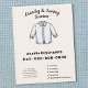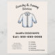 Un folleto con una ilustración de una camisa blanca limpia con una raya perfectamente planchada en el medio, que también incluye detalles de contacto y una lista completa de servicios. Perfecto para todas las actividades de planchado, lavandería, limpieza en seco, lavandería, cuidado de ropa, lavado de ropa, etc.